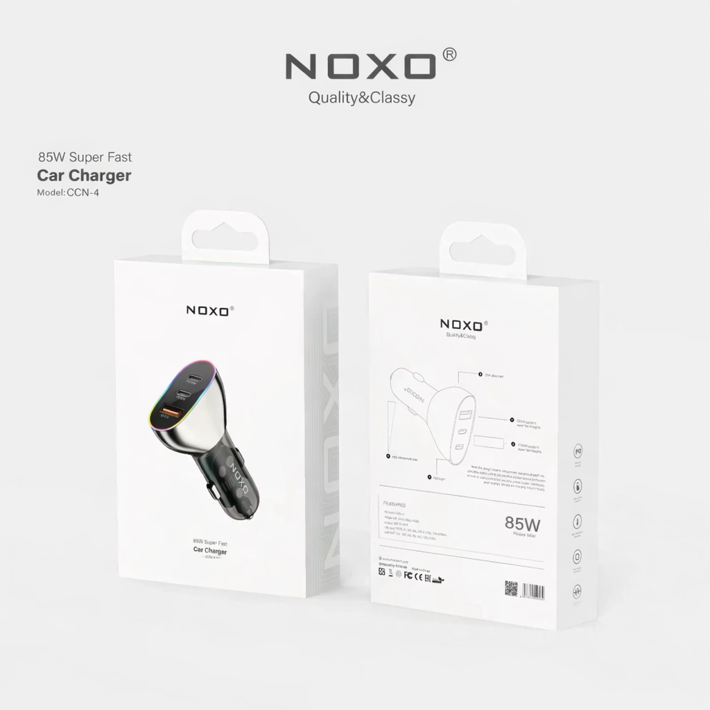 شارژ سریع 85 وات: شارژر فندکی نوکسو CCN-4 با توان 85 وات، سریعترین تجربه شارژ را برای شما فراهم میآورد. این شارژر با استفاده از فناوری Power Delivery 30W (PD30W) و Quick Charge 4.0 (QC4.0) به دستگاههای شما اجازه میدهد که با سرعت بینظیری شارژ شوند.