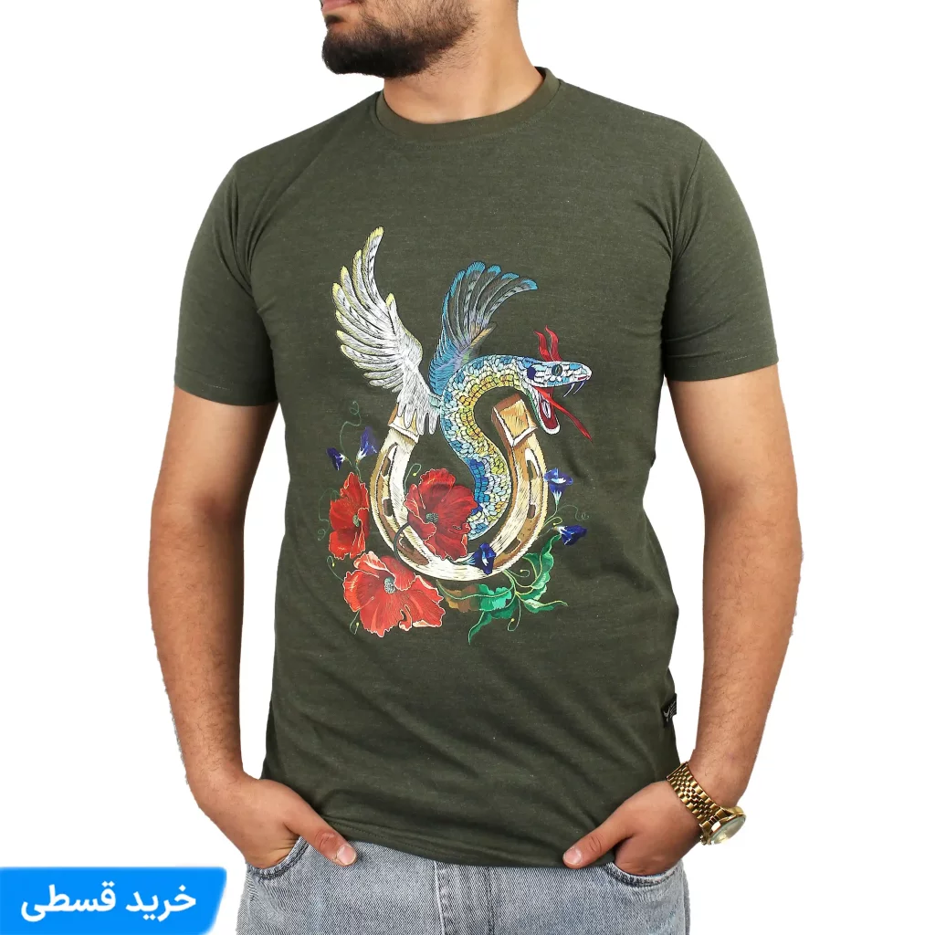 تیشرت اژدهای بی شاخ و دم مردانه و زنانه در سایز های L-XL-2XL-3XL با رنگبندی سبز ،مشکی ، سرمه ای ،کالباس تیره از جنس نخ.