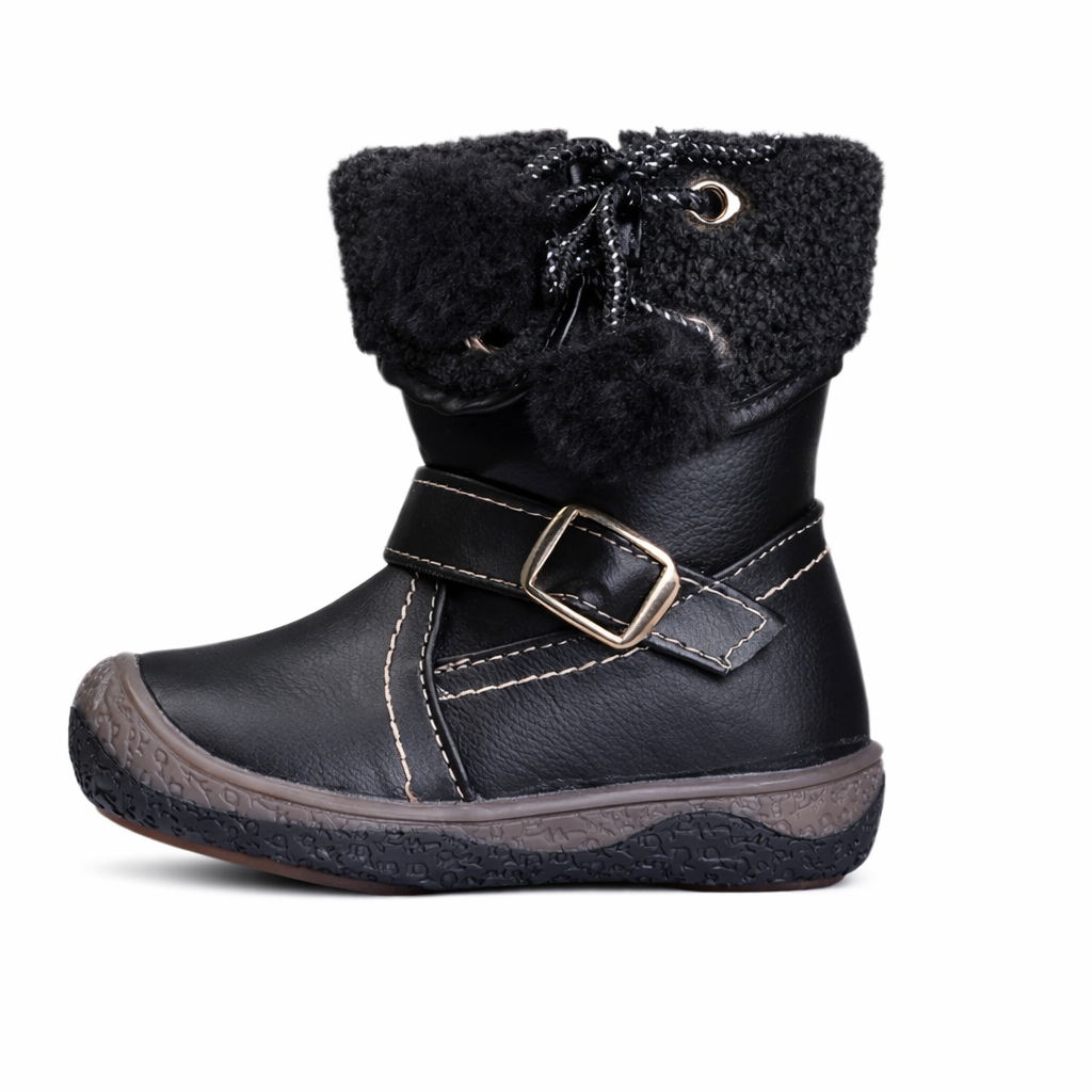 وجود آستر و لبه خزدار نرم در قسمت داخلی، گرمای لازم را برای پاهای کودک فراهم کرده و از نفوذ سرما جلوگیری میکند.