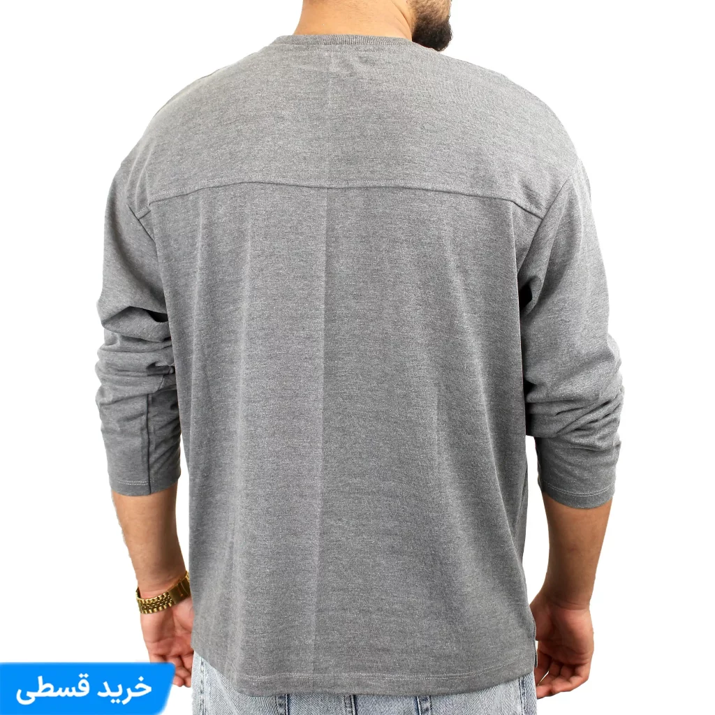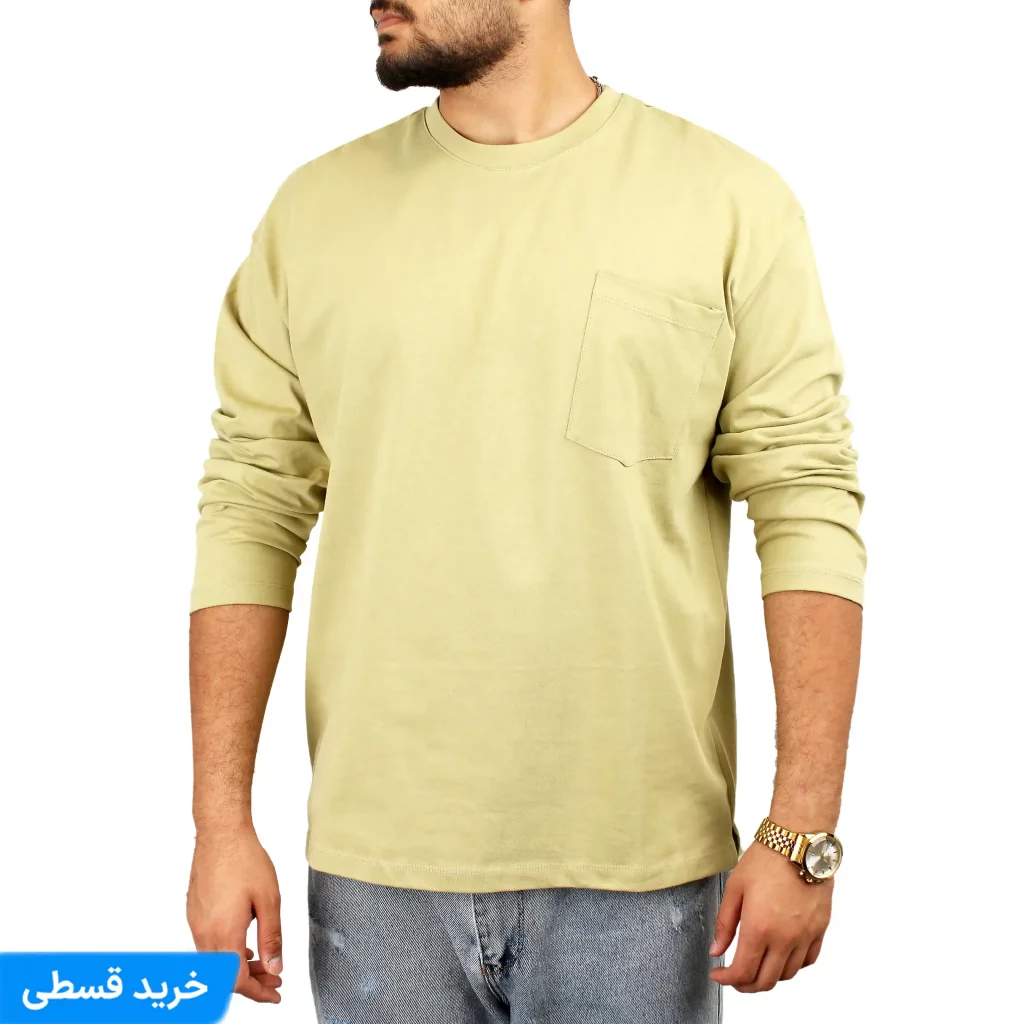 بلوز مردانه یقه گرد سایز بزرگ ساده جیب دار